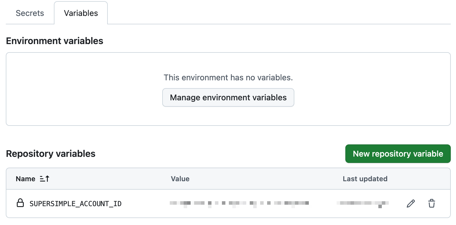 You'll first need to store an environment variable and a secret in your GitHub repository settings (Settings -> Secrets and variables).